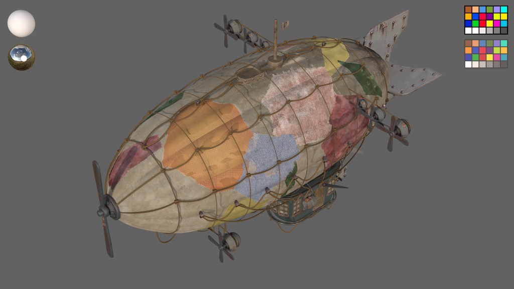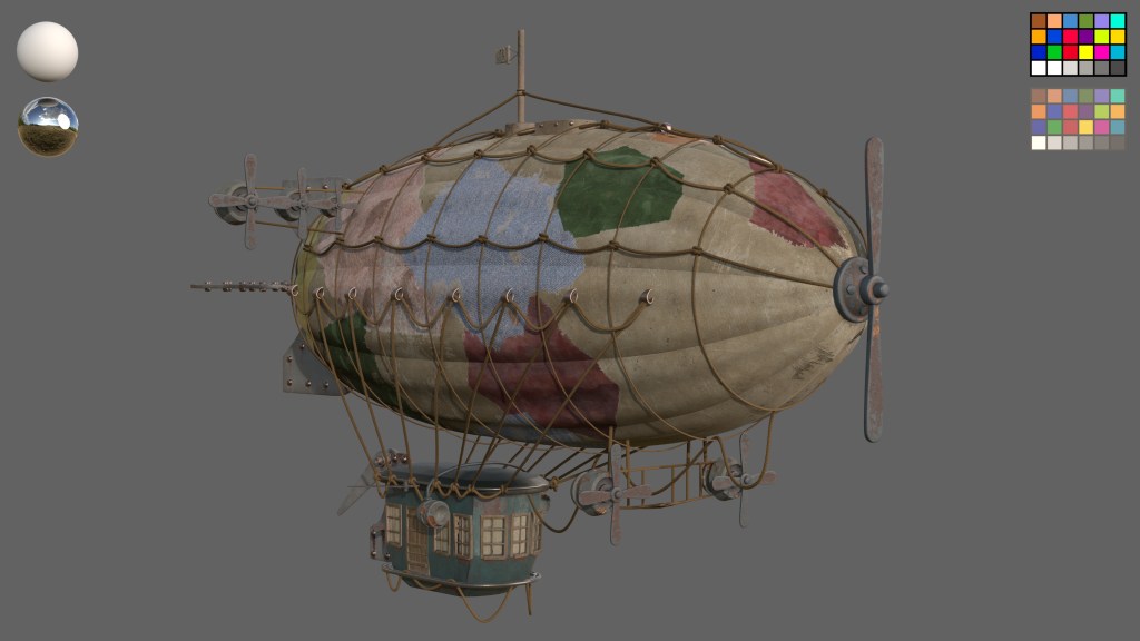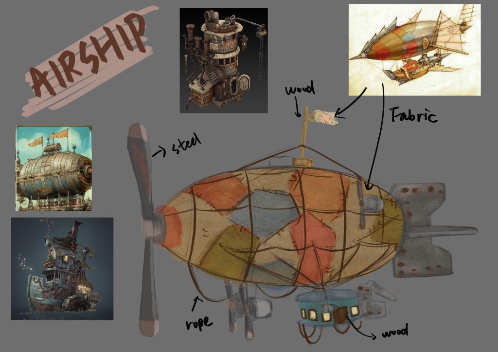 In this project, I want to texture a stylized airship with multiply materials. The material choice is mainly inspired from the old airship, and color choice is from steampunk.