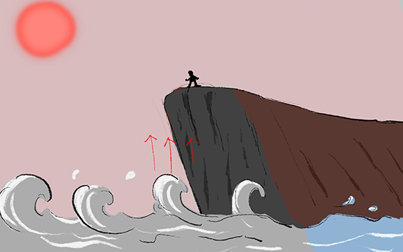 From the red cliff of the mountain —